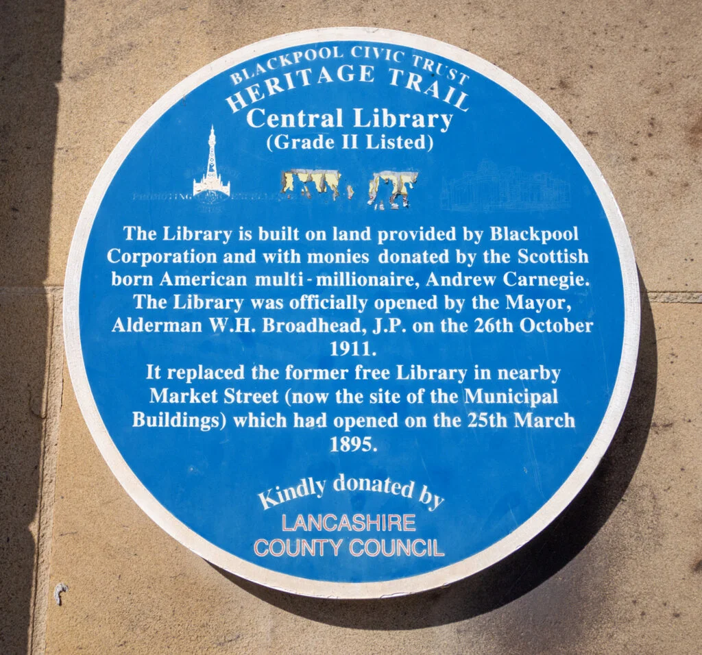 Central Library is a notable public library located in a historic building that also houses the Grundy Art Gallery. The building is Grade II listed, recognizing its historical significance. The site was chosen in 1908 on Queen Street, with funding from artists Cuthbert and John Grundy from Bury. Construction began in 1909 and was completed in 1911, with the design by the Scottish firm Cullen, Lochhead and Brown.