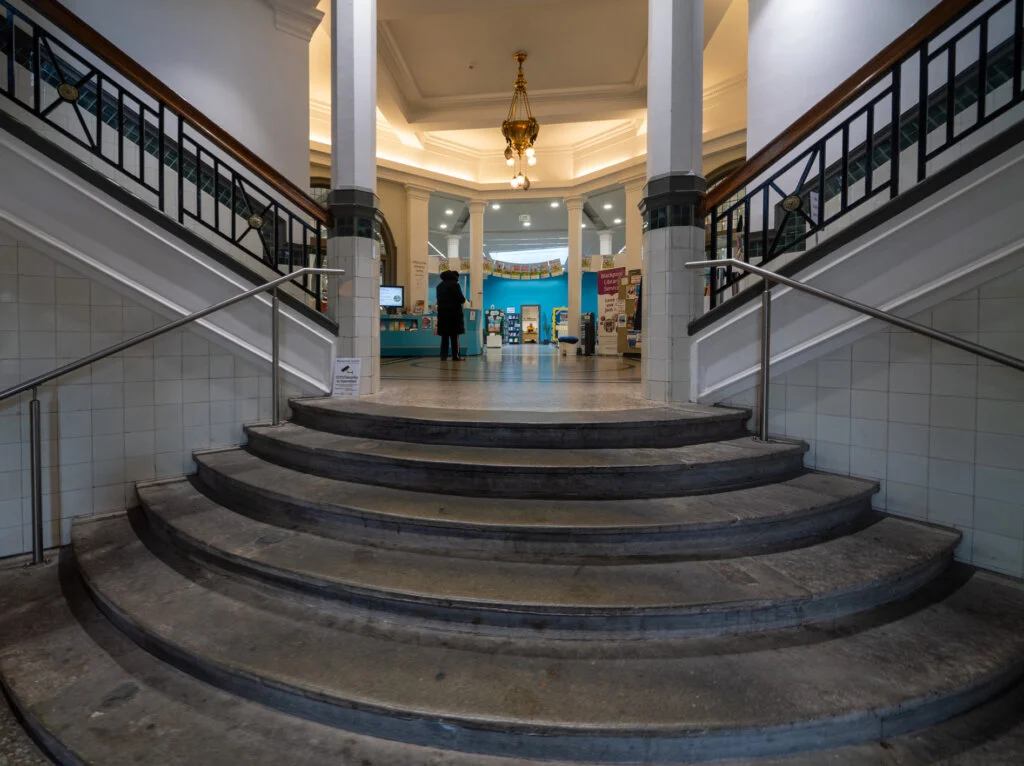 On 20 October 1983, Historic England listed the building as Grade II, recognizing its national importance. For its centenary, the library added eight new stained glass windows designed by Nick Robertson and made by Rainbow Glass Studios in London.