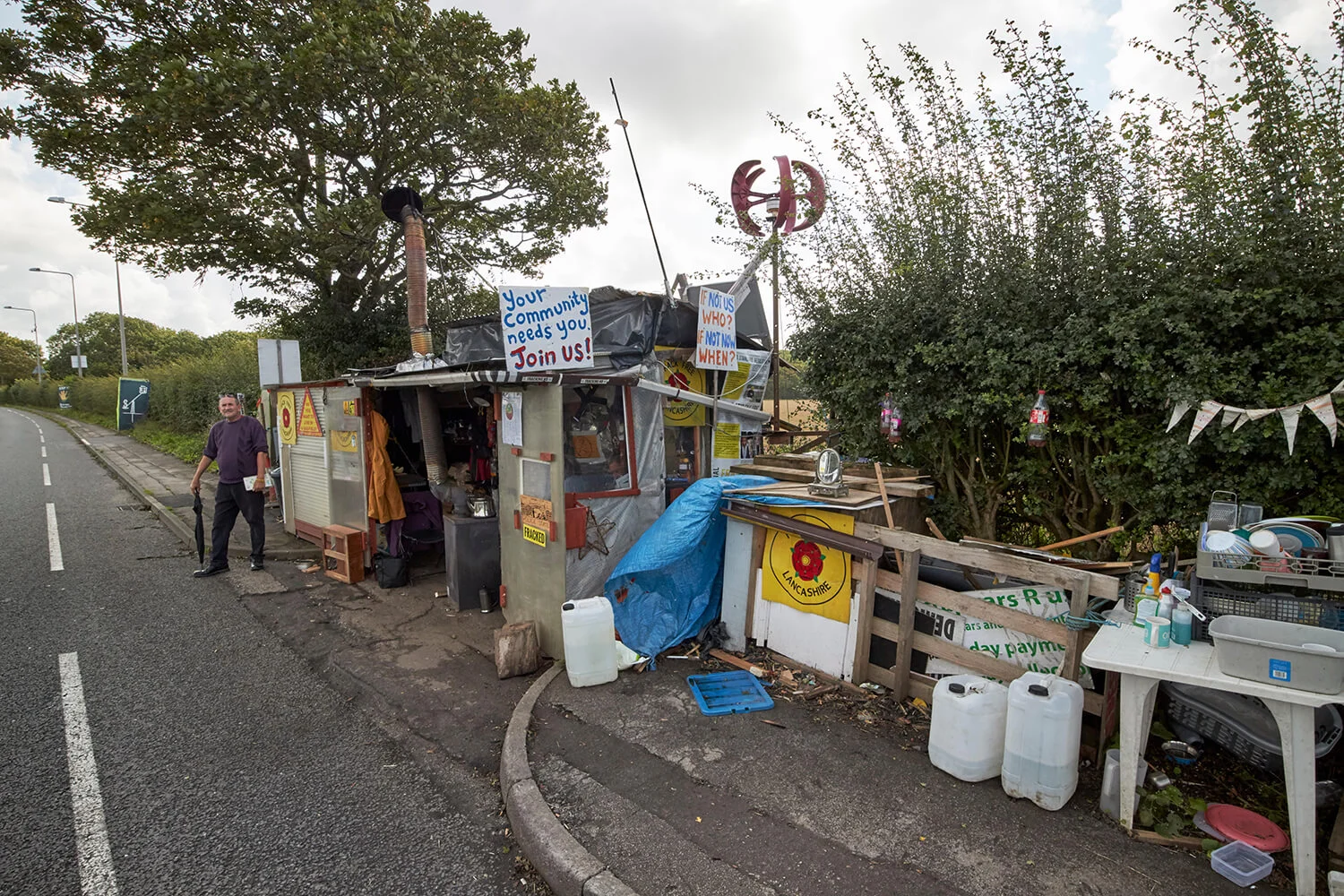 Reclaim the Power protesters outside the Cuadrilla Fracking Site on Preston New Road Little Plumpton.