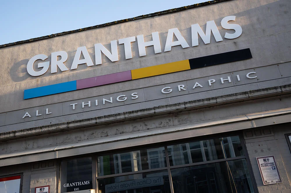 Granthams continued to grow, producing many highly skilled tradespeople, some of whom went on to establish their own businesses, helping the area’s reputation for quality craftsmanship to become among the best in the country. During the 1960s, the introduction of instant dry transfer lettering became essential for both sign production and artwork creation for the offset litho printing process, which required photographic-quality originals. In response, Granthams became one of the first companies in the UK to establish a dedicated department for graphic materials and equipment, becoming the country’s first dealer and distributor of Letraset printpaks.