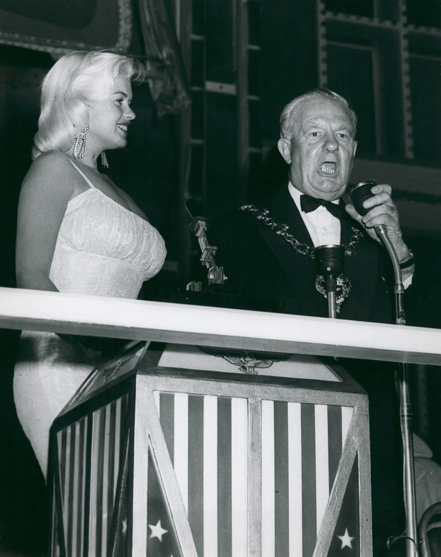 You can see Jayne Mansfield switching on the lights in this video.