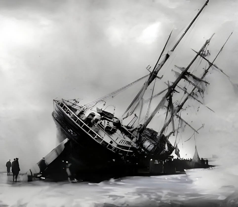On 22 December, 1894, the Abana, a Norwegian barque, was wrecked along the Blackpool coastline during a fierce storm. Sailing to Florida, the ship’s crew mistook the newly-built Blackpool Tower for a lighthouse, leading them dangerously close to the shore. Battling high winds and rough seas, the vessel eventually ran aground near Little Bispham. Despite the peril, all 17 crew members and the ship’s dog were rescued by the Blackpool lifeboat team. The lifeboat itself faced challenges, briefly becoming grounded on a sandbank during the operation. After the rescue, the sailors were brought ashore and celebrated their survival with a gathering at the Red Lion Hotel in Bispham, organised by the local community.