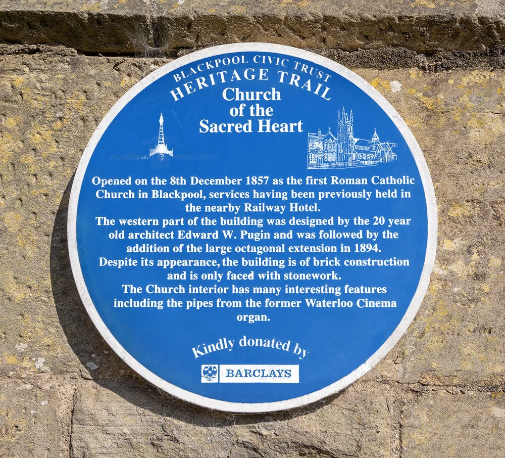 Sacred Heart Church was founded by the Jesuits as the town’s first Roman Catholic church. It was built in 1857 to a design by Edward Welby Pugin. The church was enlarged, to the east, in 1894, to a design by Pugin & Pugin. It was designated as a Grade II* listed building by English Heritage on 20 October 1983. The Grade II* listing is for “particularly important buildings of more than special interest”. Since 2004, it has been served by priests from the Roman Catholic Diocese of Lancaster. The parish priest is Canon Robert Dewhurst.