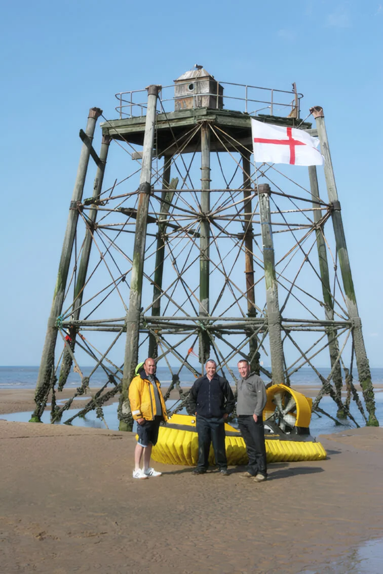 Remains of the Wyre Light, a 40-foot tall iron screw-pile lighthouse marking the navigation channel to the town of Fleetwood. © Alamy
