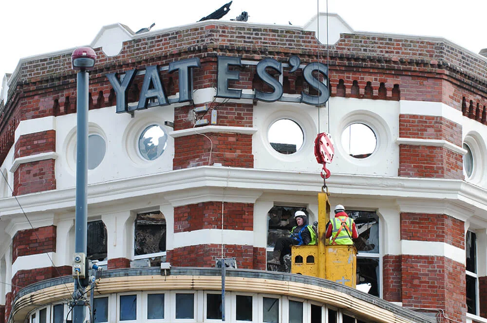 In February 2009, Blackpool’s historic Yates’s Wine Lodge was destroyed in a devastating arson attack that shook the heart of the resort. A massive blaze tore through the building, engulfing not only Yates’s but also nearby shops, including a pet store on Clifton Street and the Wildcats lap dancing bar. The fire, which began around 3:15 AM, spread quickly, aided by strong winds, and was so intense that over 100 firefighters were needed to contain it. The flames raged through the roof of the pet shop before reaching Yates’s, which had only recently reopened after a £500,000 restoration. Seven people, including a baby, were evacuated from the area, and three people were treated for smoke inhalation.